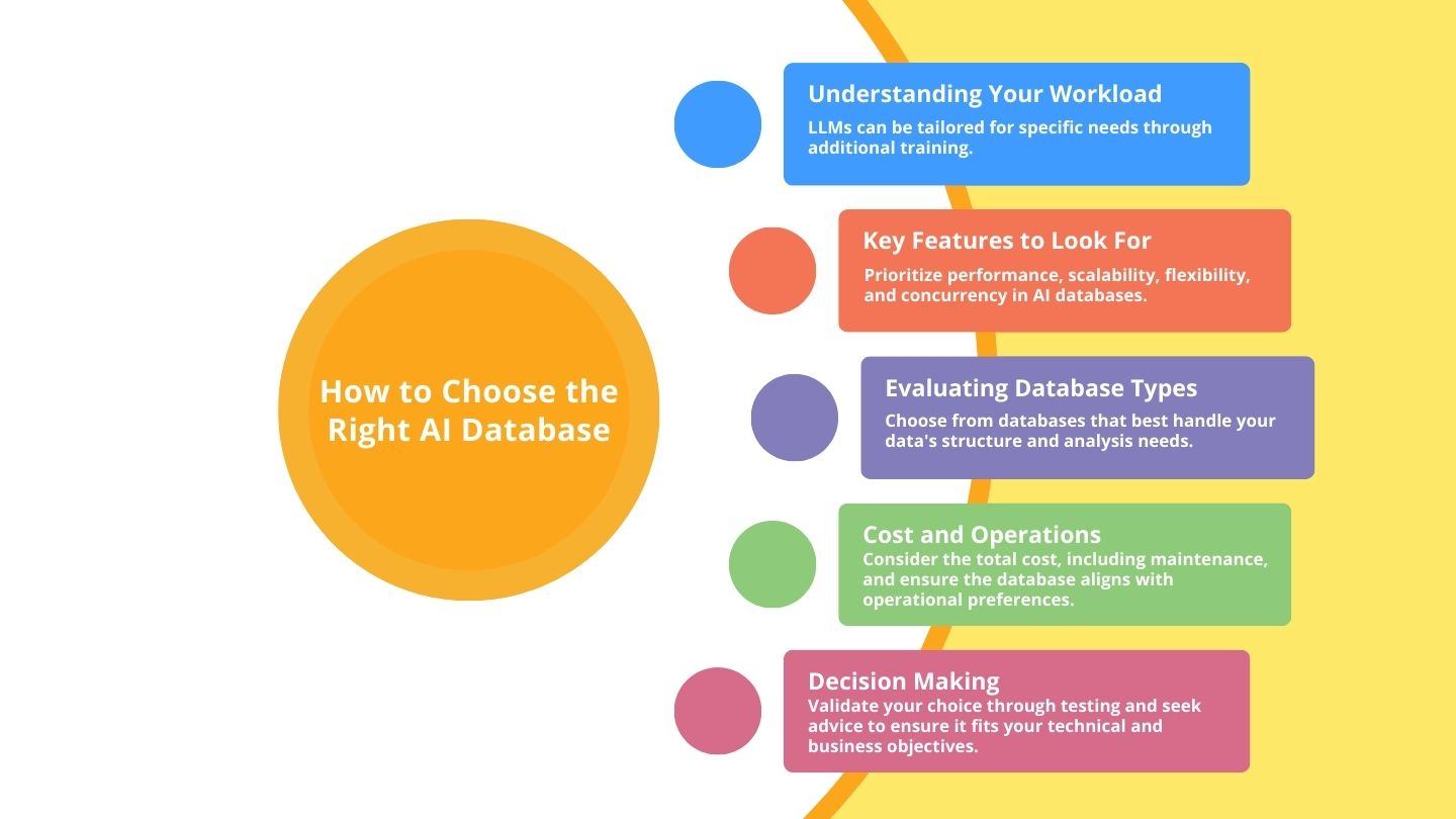 Choosing the right AI database for your needs involves a careful consideration of your specific requirements, projected data growth, and the types of analysis you’ll perform. Below is a structured approach to help you navigate this decision-making process.