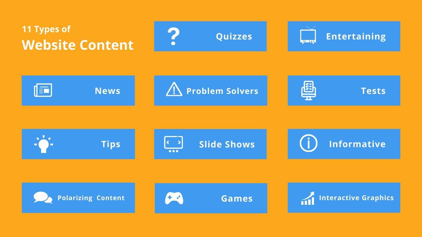 Even by just skimming through the kinds of content listed here makes one thing clear: it is the mix of types that makes a website successful.